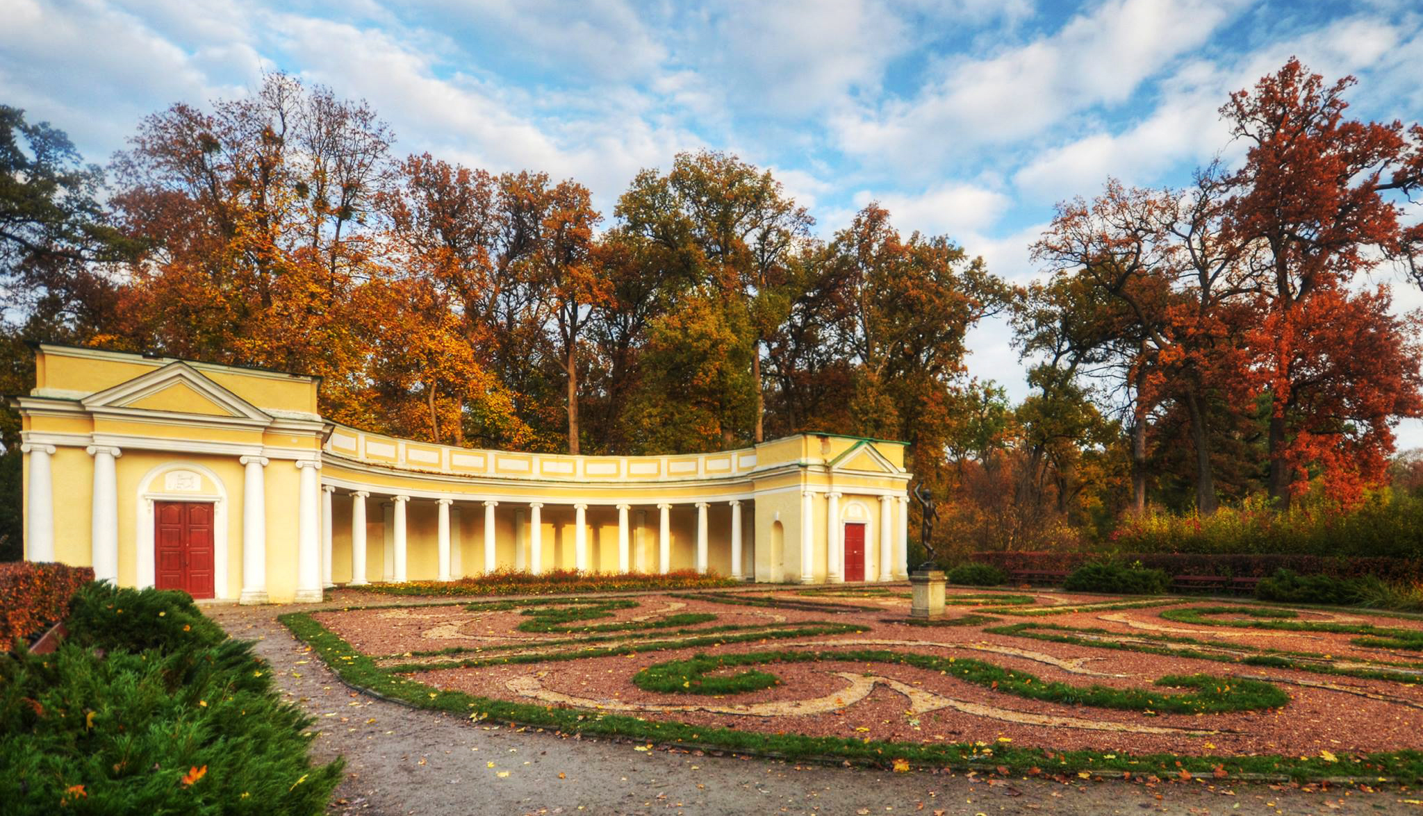 Осенняя Александрия прекрасна и неподражаема! Вот вам кажется, что может быть необычного в деревьях и аллеях? Но это только пока вы не посетили этот парк осенью! Шуршащая под ногами золотая и багряная листва, свежий, приятный воздух, красивые, ухоженные аллеи и, конечно, архитектура и скульптурные шедевры. Все это, окружая вас, буквально заставит влюбиться в Александрию!