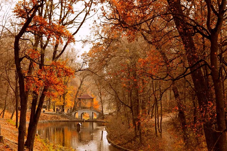 Обязательно посетите английский парк Арборетум, подземный туннель, загадайте желание в гроте, полюбуйтесь великолепным 14 метровым водопадом, сделайте фото на память у фонтана “Змея” и, конечно, прокатитесь на гондоле или катамаране на остров любви. Он особенно красив осенью!
